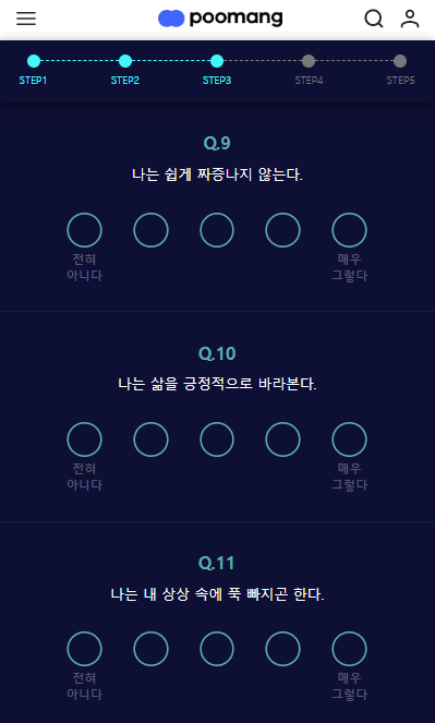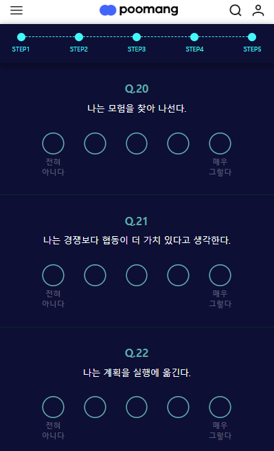 MBTI 성격 유형 결과가 맨날 바뀌는 분들이나 본인의 성격에 대해서 잘 모르시겠는 분들이라면, 혹시 푸망(poomang)에서 성격 스펙트럼 테스트를 해보셨나요?