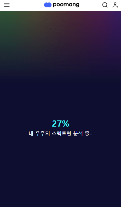 25문항 까지 다 체크하셨다면, 내 우주의 스펙트럼 분석 중.. 퍼센트(%)가 올라가는 것을 확인 하실 수 있습니다.