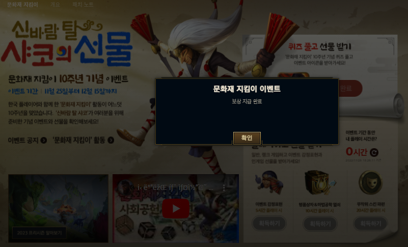 이상 문화재 지킴이 퀴즈를 풀어서 신바람 탈 샤코 아이콘을 받으실 수 있습니다.
