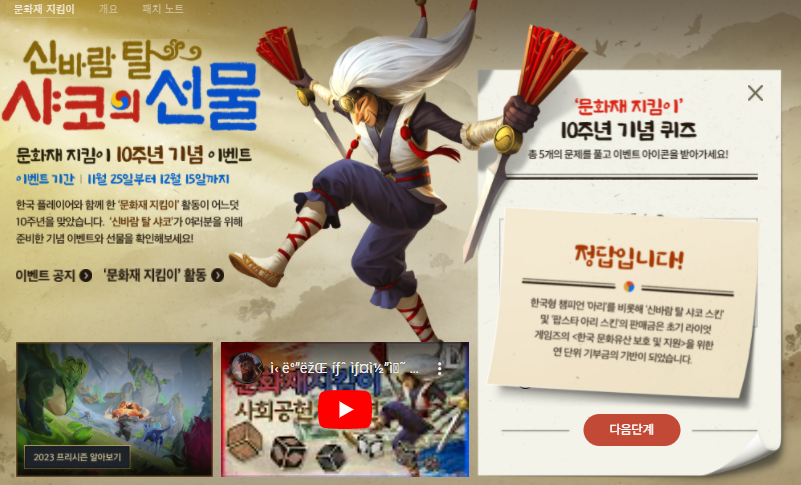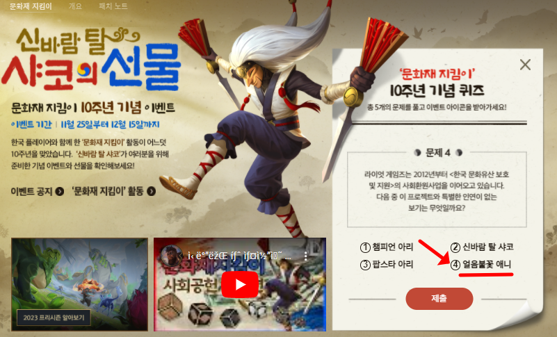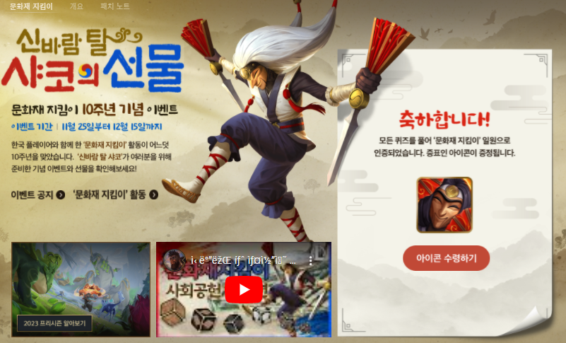 첫번째, 롤 문화재 지킴이 퀴즈 풀고 '신바람 탈 샤코' 아이콘