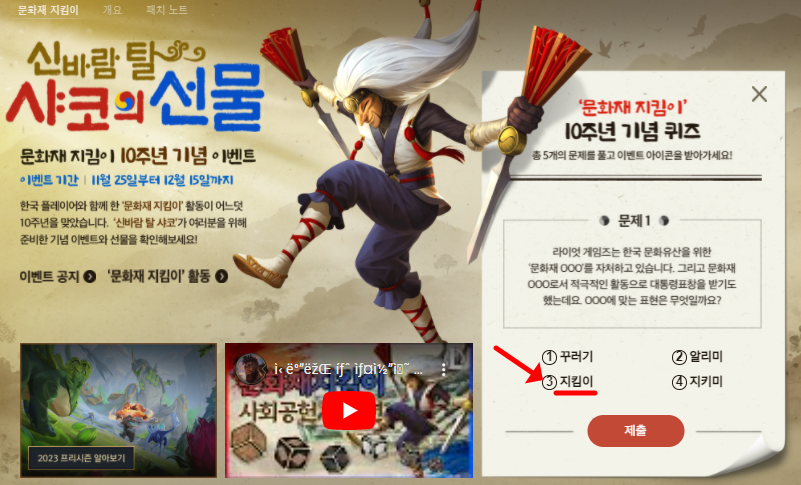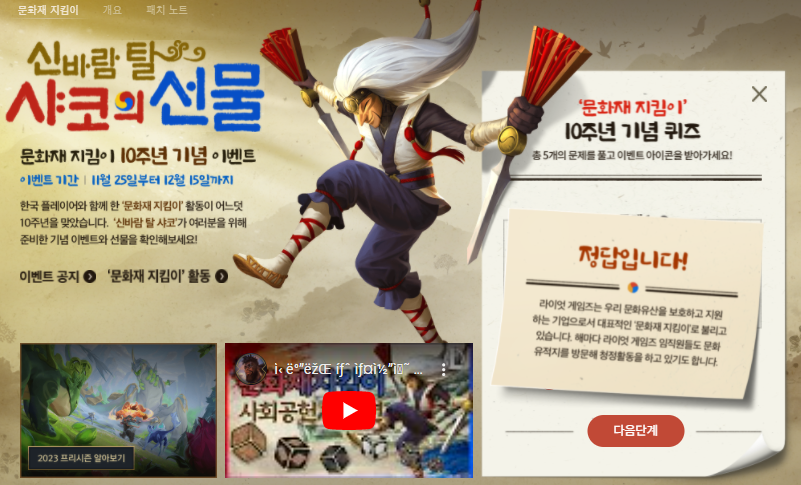 지금부터, 롤 문화재 지킴이 퀴즈 정답 및 이벤트 선물 및 기간에 대해서 알아보도록 하겠습니다.