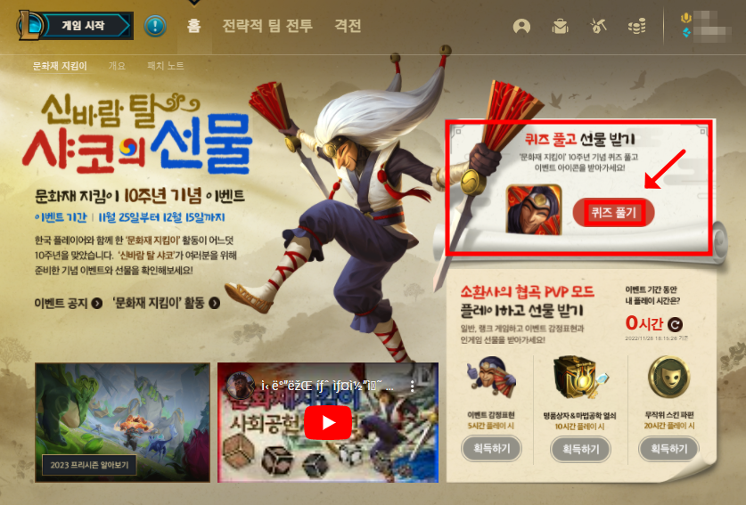 롤 문화재 지킴이 퀴즈 푸는 방법은 아래의 내용을 참고해주시길 바라며, 자세한 이벤트는 아래의 링크를 통해서 참고하시길 바랍니다.
