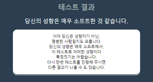 -성격 스펙트럼 테스트 (ep.1 종합편: 성격 정밀 분석 / 성격 스펙트럼 테스트 링크 바로가기)