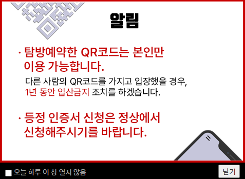 ※ 한라산 성판악, 관음사 코스를 예약한 QR코드는 본인만 이용이 가능하며, 만약 다른 사람의 QR코드를 사용하여 입장을 하였을 경우에는 1년 동안 입산 금지 조치를 취한다고 하니 참고하시길 바랍니다.