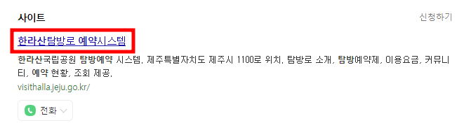 1. 먼저, 검색어 창에 '한라산 탐방 예약'을 검색해주시면 됩니다.