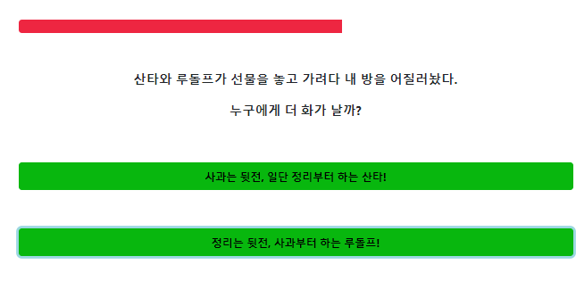 7. 산타와 루돌프가 선물을 놓고 가려다 내 방을 어질러놨다. 누구에게 더 화가 날까?