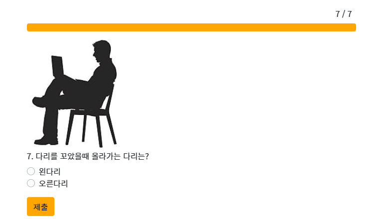 7. 다리를 꼬았을 때 올라가는 다리는?