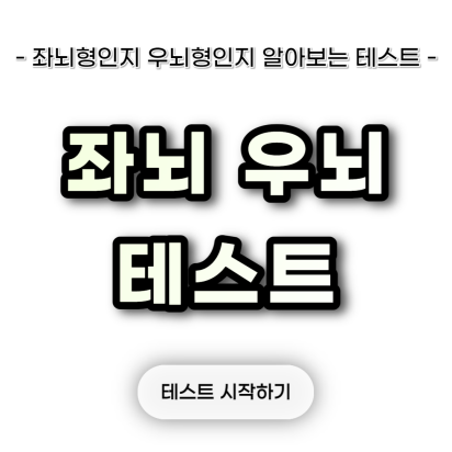 좌뇌 우뇌 테스트를 통해서 본인이 좌뇌형이 좀 더 가까운지 아니면 우뇌형이 좀 더 가까운지 궁금하신 분들은 아래의 링크나 버튼을 클릭하셔서 '좌뇌 우뇌 테스트'를 해보시길 바랍니다.