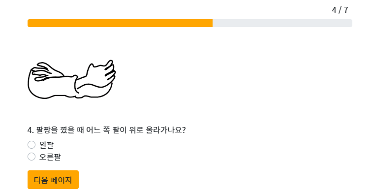 4. 팔짱을 꼈을 때 어느 쪽 팔이 위로 올라가나요?
