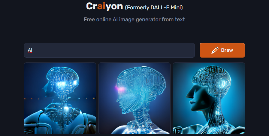 - 크레용 사이트는 검색어 창에 본인이 그림보고 싶은 것을(Ai) 입력하여 'Draw'를 클릭해주시면 아래의 그림과 같이 입력한 단어에 맞는 그림들이 나옵니다. 크레용은 구글플레이스토어에 있으며, 모바일로 이용가능합니다.