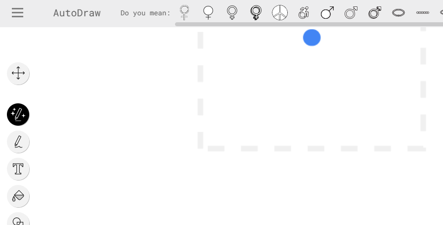 - 오토드로우 사이트는 다른 사이트들과는 조금 달리 그림판으로 그림을 그려서 이미지를 만들어주는 사이트입니다. 아래와 같이 마우스로 그림을 그리면 이미지를 추천해주며, 본인이 원하는 그림을 선택하실 수 있습니다. 이 기능을 사용하시려면 'AutoDraw' 펜 모양을 클릭하셔서 이용하시길 바랍니다.