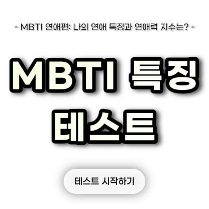 나의 연애 특징과 연애력 지수를 알아 볼 수 있는 MBTI 특징 테스트에 대해서 궁금하시다면 아래의 링크나 버튼을 클릭하셔서 'MBTI 특징 테스트 연애편'을 실시해보시길 바랍니다.