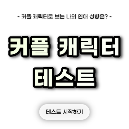 이처럼 커플 캐릭터 테스트를 통해서 나의 연애 성향에 대해 캐릭터로 알아볼 수 있는 커플 캐릭터 테스트가 궁금하시다면 아래의 링크나 버튼을 클릭하셔서 '커플 캐릭터 테스트'를 실시해보시길 바랍니다.