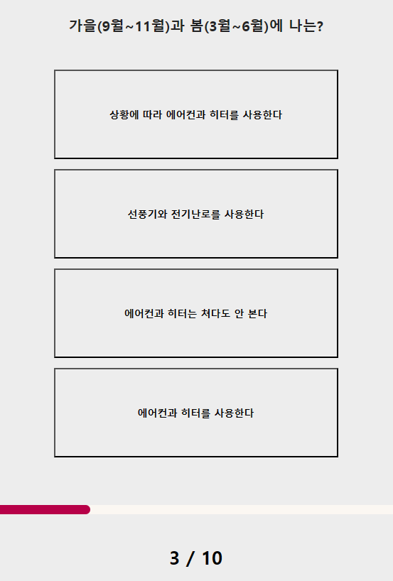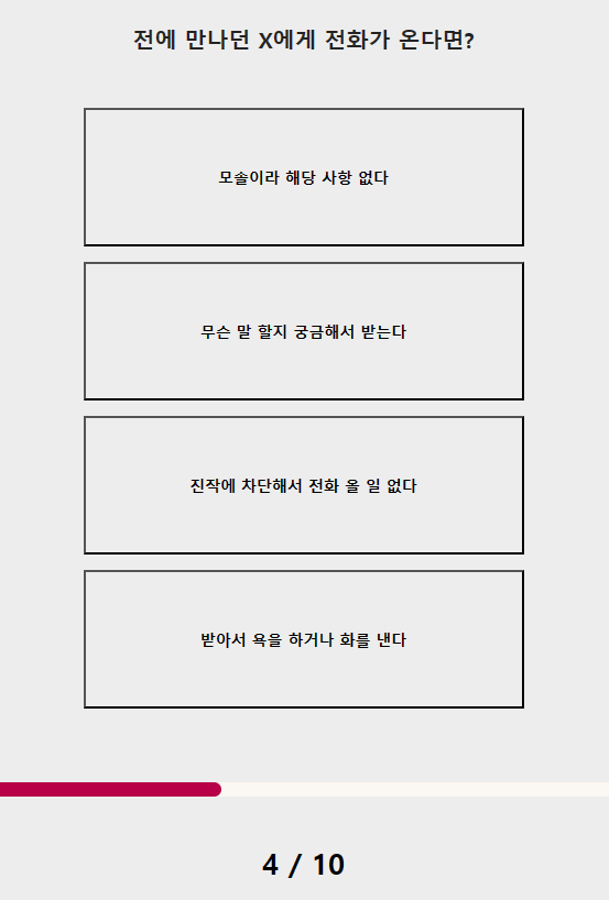 3. 가을(9월~11월)과 봄(3월~6월)에 나는? 4. 전에 만나던 X에게 전화가 온다면?