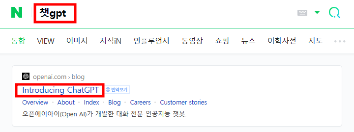 - 먼저 검색어 창에 '챗gpt 또는 OpenAi 공식 홈페이지'를 검색하셔서 사이트에 들어가주시면 됩니다.