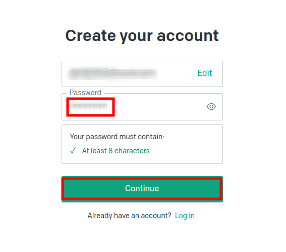 새로 회원가입을 위해서 아이디 메일을 입력한 뒤 'Continue' 버튼을 클릭하시면 됩니다. 다음으로는 비밀번호를 입력해주시면 되므로, 비밀번호 최소 8자리 영문과 숫자를 조합하여 입력해 주신 다음 'Continue' 버튼을 클릭하시면 됩니다.