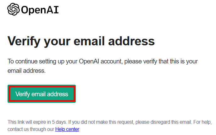 그 다음으로는 메일 아이디인 메일 주소로 확인 메일이 보내집니다. 본인의 메일에 챗GPT 확인 메일을 확인하신 다음 'Verify email address' 버튼을 클릭해주시면 됩니다.