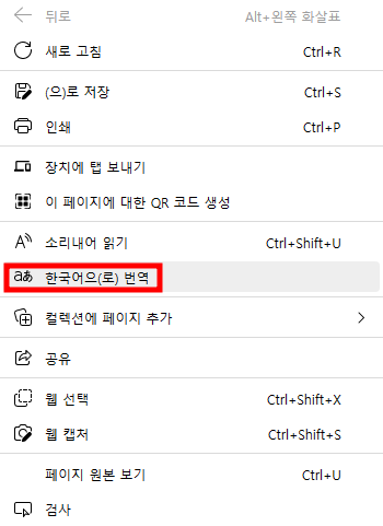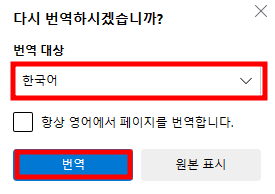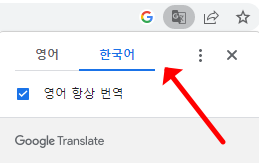 크롬 브라우저의 우측 상단에 언어 번역 아이콘을 클릭하신 다음 한국어로 바꾸어 주시면 됩니다.