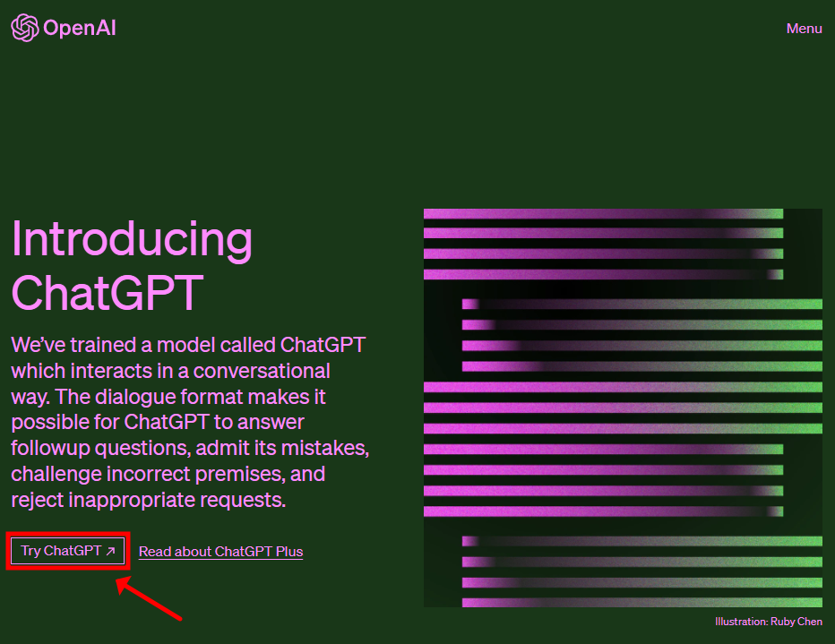 검색어 창에 '챗GPT 또는 OpenAI'를 검색 → OpenAI 공식 홈페이지에 접속 → 메인 화면 'Try ChatGPT' 버튼 클릭 → 처음 챗GPT 이용 하시는 분들은 'Sign up' 메뉴를 통해서 회원 가입을 진행하시면 됩니다.