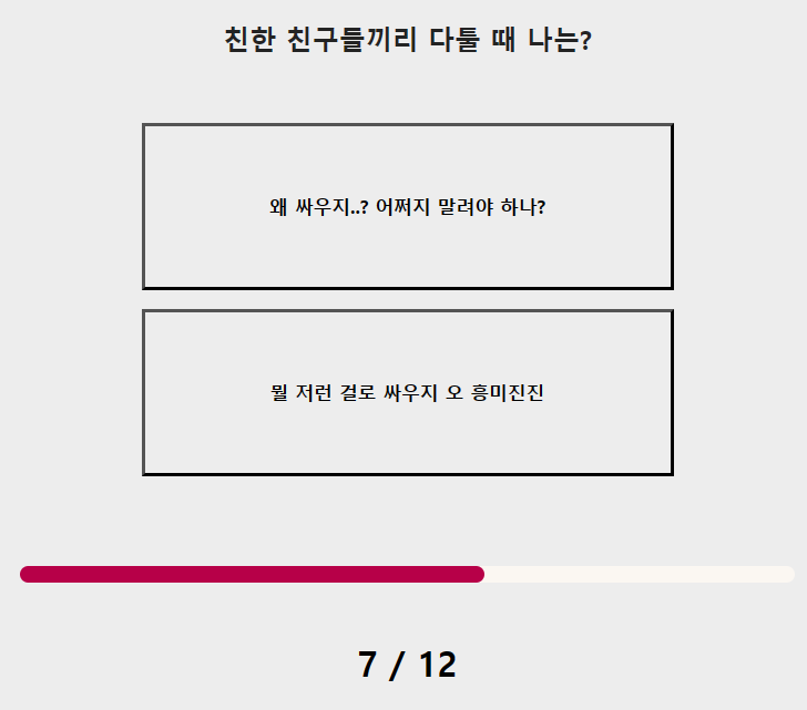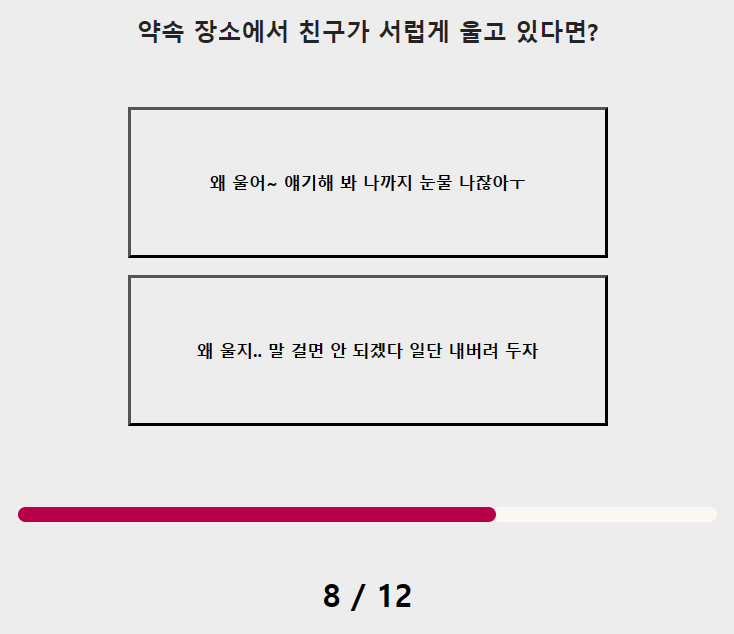 7. 친한 친구들끼리 다툴 때 나는? 8. 약속 장소에서 친구가 서럽게 울고 있다면?