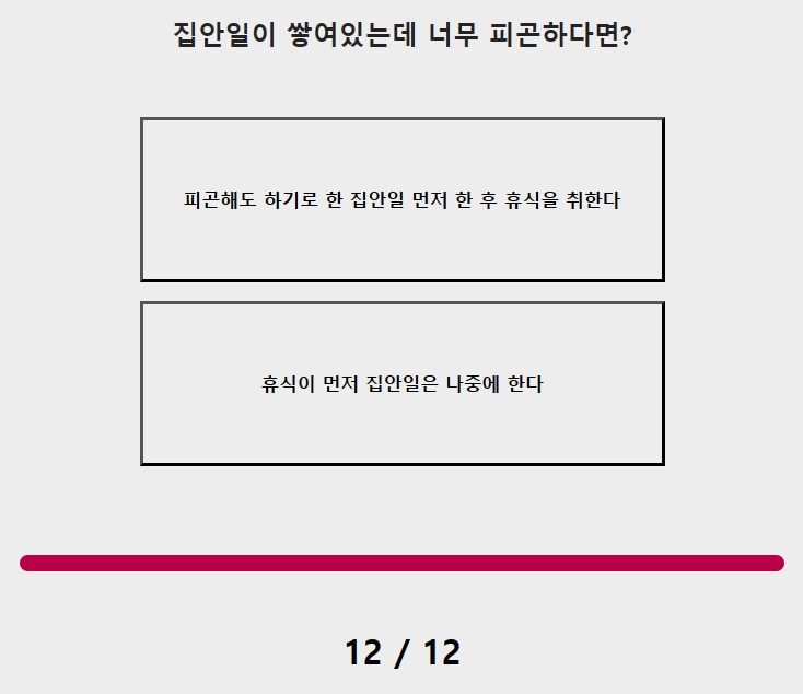 11. 책상을 정리할 때 나는? 12. 집안일 이 쌓여있는데 너무 피곤하다면?