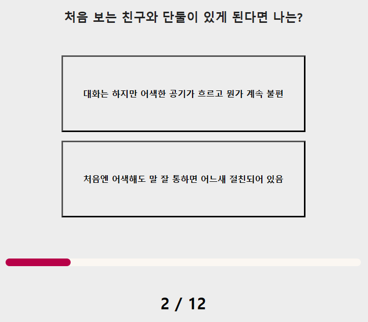 2. 처음 보는 친구와 단둘이 있게 된다면 나는?