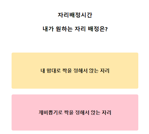 7. 계획표를 발표한 후 나에게만 박수를 쳐주지 않을 때? 8. 자리 배전 시간 내가 원하는 자리 배정은?