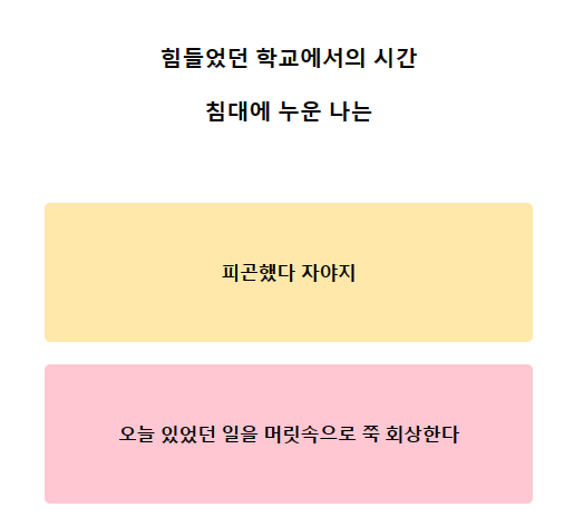 9. 자리를 뽑았는데 안 친한 애와 짝꿍이 됐다! 10. 힘들었던 학교에서의 시간 침대에 누운 나는?