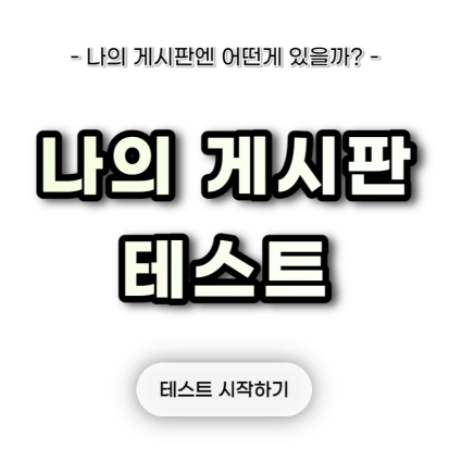 요즘에는 MBTI 관련 심리 테스트들이 정말 유행을 많이 하고 있는데요. 최근에 라벨 테스트, 감정 그래프 테스트 등등 나오면서 자신과 잘 맞는 부분이 많이 있어서 사람들이 테스트를 많이 하곤 합니다. 지금부터 소개를 해 드릴 테스트는 '나의 게시판 테스트'인데요.