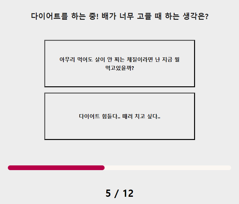 5. 다이어트를 하는 중! 배가 너무 고플 때 하는 생각은? 6. 만약 애인과 결혼을 하게 된다면 어떨까?