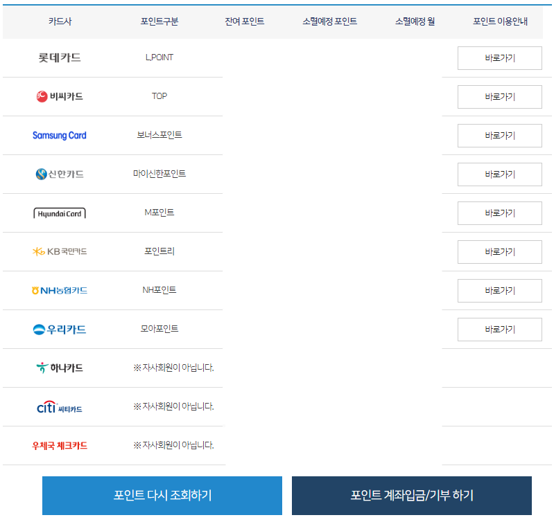 카드 포인트 통합 조회 사이트는 아래의 링크나 버튼을 클릭하시면 됩니다.