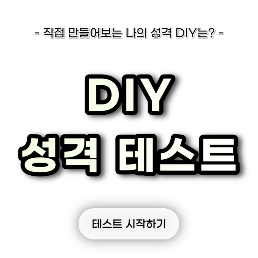 나의 성격 유형을 알아보는 'DIY 성격 테스트'에 대해서 궁금하신 분들이라면 아래의 링크나 버튼을 클릭하셔서 'DIY 성격 테스트'를 해보시길 바랍니다.