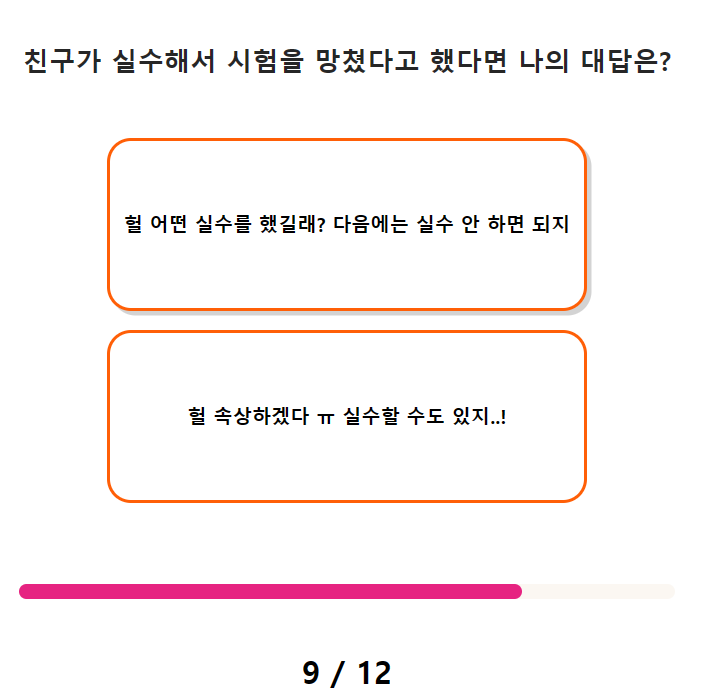 9. 친구가 실수해서 시험을 망쳤다고 했다면 나의 대답은? 10. 무언가를 하겠다고 다짐했을 때 나는?