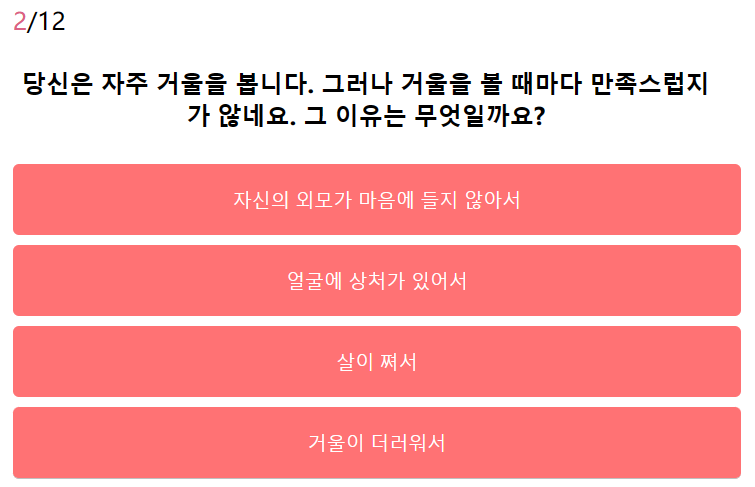 1. 당신은 자주 거울을 봅니다. 그러나 거울을 볼 때마다 만족스럽지가 않네요. 그 이유는 무엇일까요?