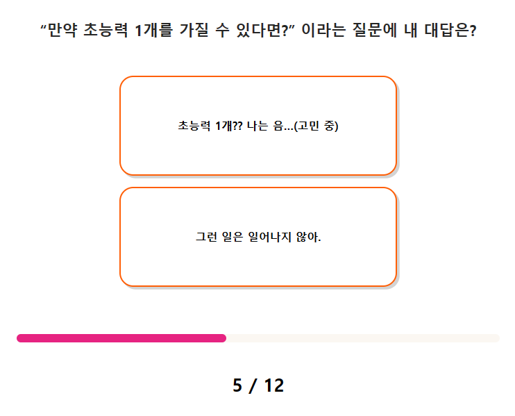 5. "만약 초능력 1개를 가질 수 있다면?" 이라는 질문에 내 대답은? 6. 정말 재밌게 본 영화가 열린 결말로 끝이 났다면?