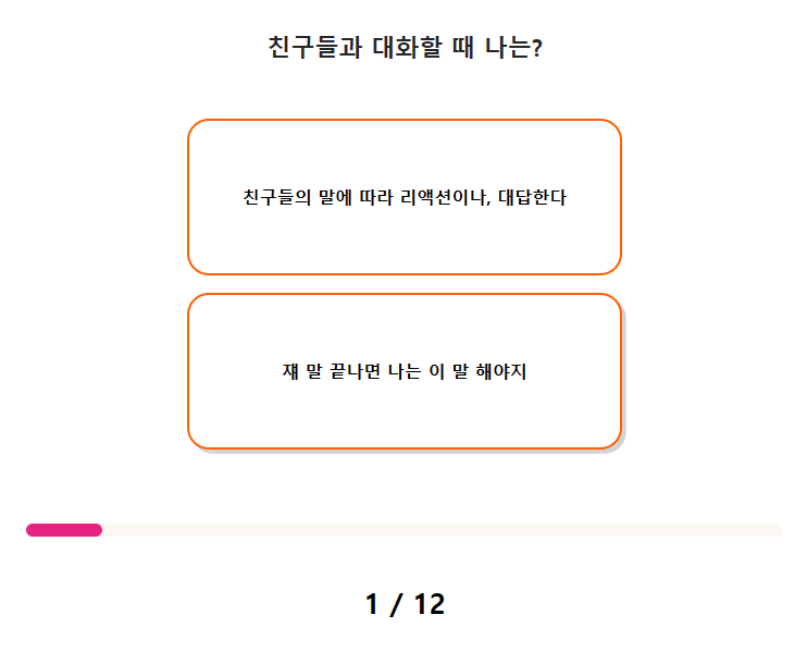 1. 친구들과 대화할 때 나는? 1) 친구들의 말에 따라 리액션이나 대답한다. 2) 재 말 끝나면 나는 이 말 해야지.