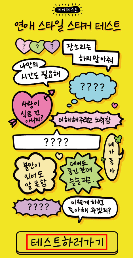 연애 스타일 스티커 테스트를 하고 싶은 분들은 아래의 링크를 클릭하셔서 한 번 테스트를 해보시길 바랍니다.