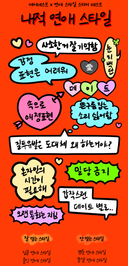 이렇게 나의 연애 스타일을 알아볼 수 있는 연애 스타일 스티커 성격 테스트 결과를 알아보았습니다.