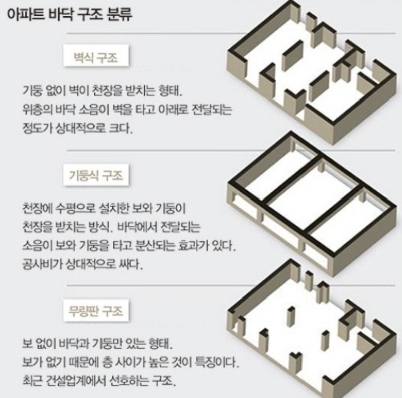 아파트 바닥 구조(3가지) 분류는 다음과 같습니다.