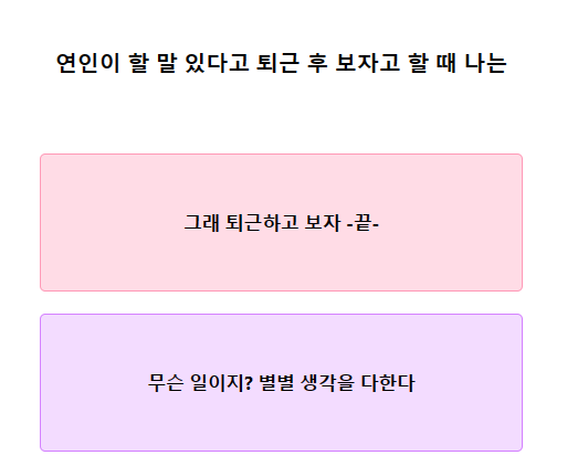 5. 연인이 할 말 있다고 퇴근 후 보자고 할 때 나는? 6. 알고 보니 자신의 제일 친한 친구를 나에게 깜짝 소개해 주려는 거였다면?