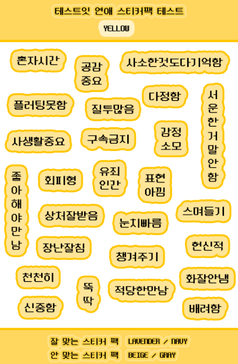 테스트잇 연애 스티커팩 테스트 결과는 Yellow(옐로우, 노란색)이 나왔습니다.