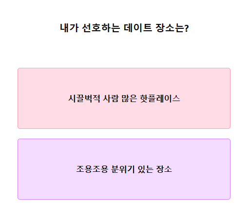 2. 내가 선호하는 데이트 장소는? 1) 시끌벅적 사람 많은 핫플레이스 2) 조용조용 분위기 있는 장소