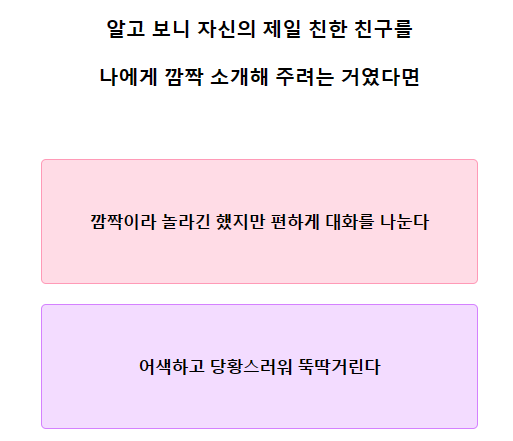 테스트에 대해서 소개를 해드리기 전에 여러분들은 성격 테스트 및 MBTI 관련된 테스트를 하는 것을 좋아하시나요? 평소에 심심할 때나 재미 삼아 요즘 유행하는 성격 테스트 및 MBTI 관련된 테스트가 정말 많이 나오고 있는데요.