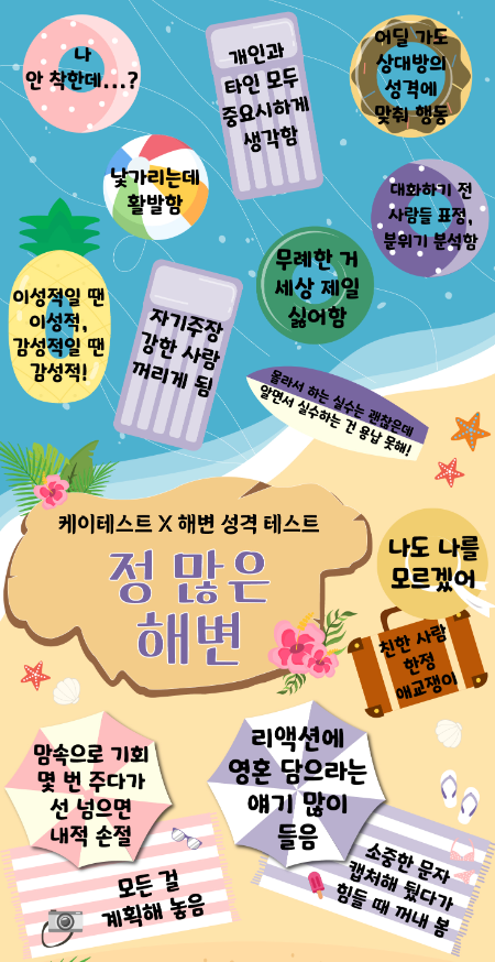 지금부터 케이테스트 해변 성격 테스트에 대해서 알아보겠습니다.