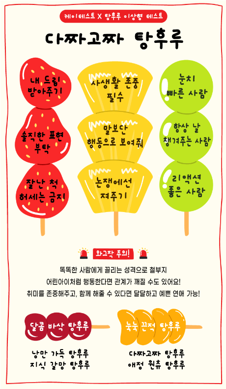 탕후루 이상형 테스트 결과는 다음과 같습니다.