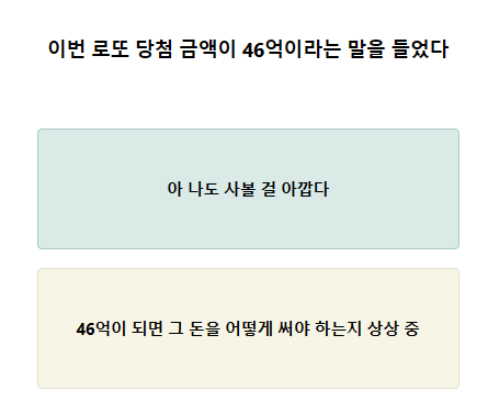 5. 이번 로또 당첨 금액이 46억이라는 말을 들었다. 6. 친구랑 내 자취방에서 재밌게 놀았다. 친구가 간 뒤에 나는?