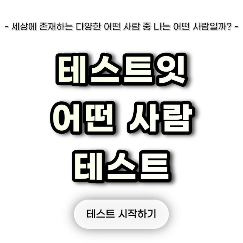 심리 테스트 및 연애 테스트 또 MBTI 성격 유형 검사 등 검사를 하는 것을 좋아하시는 분들이라면 아래의 '어떤 사람 테스트'를 재미 삼아 해보셔도 되며, 이 테스트는 간편하게 할 수 있는 테스트입니다.