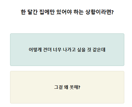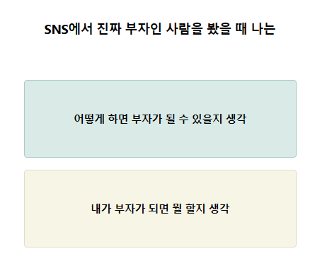 9. SNS에서 찐 부자인 사람을 봤을 때 나는? 10. 한 달간 집에만 있어야 하는 상황이라면?