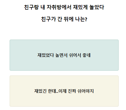 이렇게 나는 어떤 사람인지 특징적인 부분을 알아볼 수 있었으며, 다들 자신의 어떤 사람인지 성향에 맞는 키워드 결과가 비슷하게 나오셨나요?