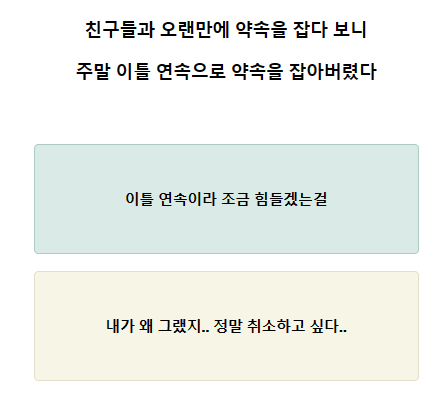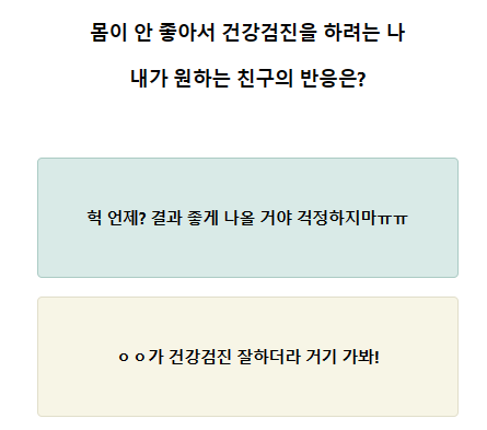 3. 몸이 안 좋아서 건강검진을 하려는 나 내가 원하는 친구의 반응은? 4. 이번 달까지 해야 하는 과제가 생겼다.